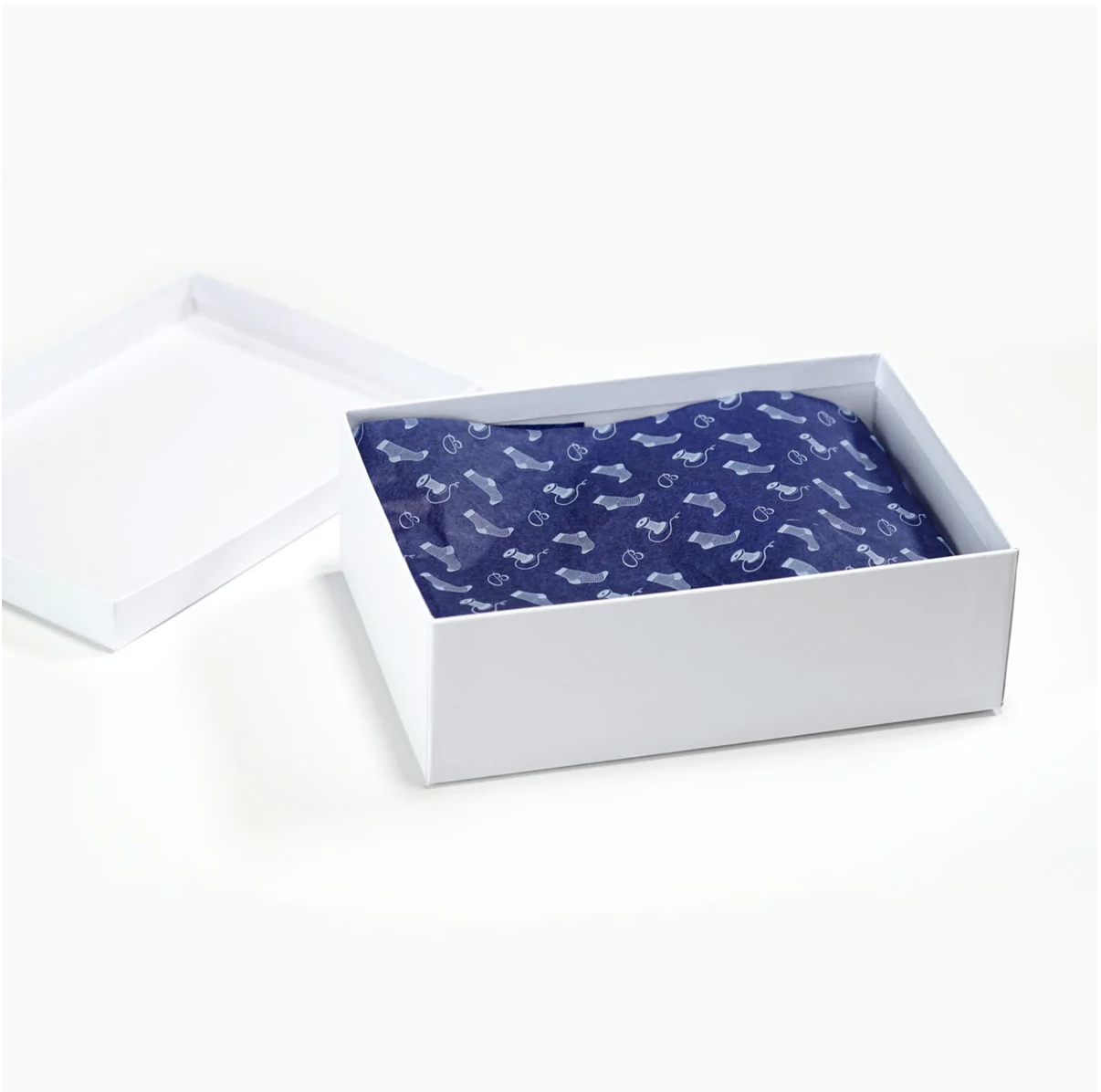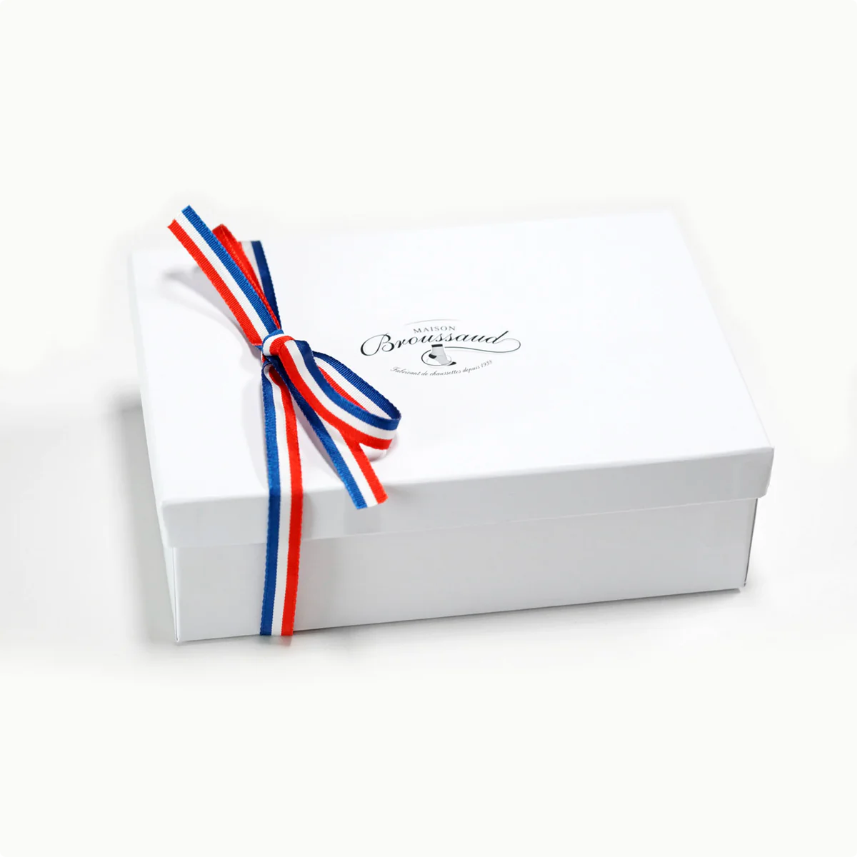 Le coffret Maison Broussaud – boîte cadeau blanche est la solution parfaite pour sublimer vos présents. Élégante et raffinée, cette boîte est spécialement conçue pour accueillir vos chaussettes Maison Broussaud, soigneusement entourés de papier de soie.