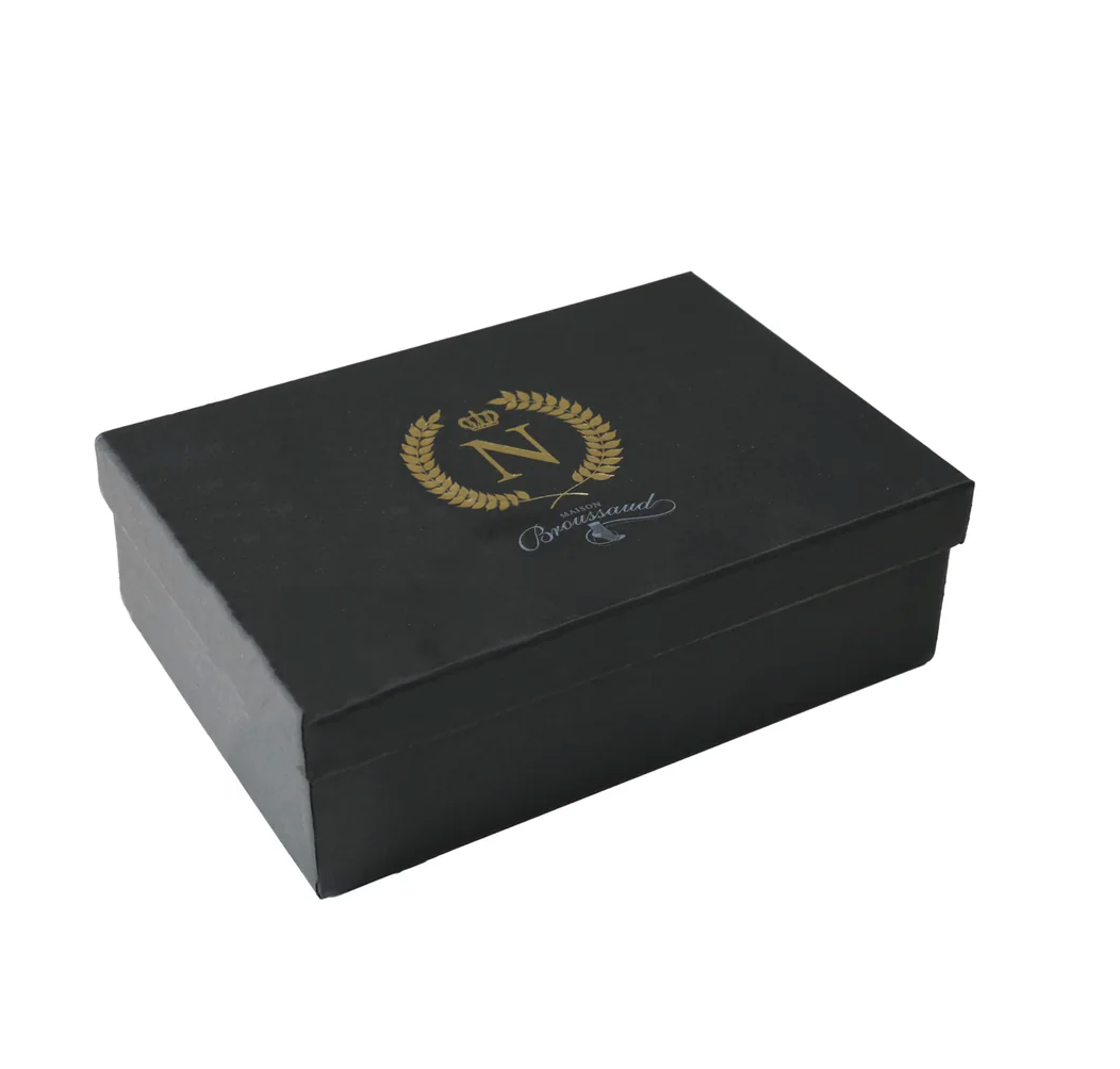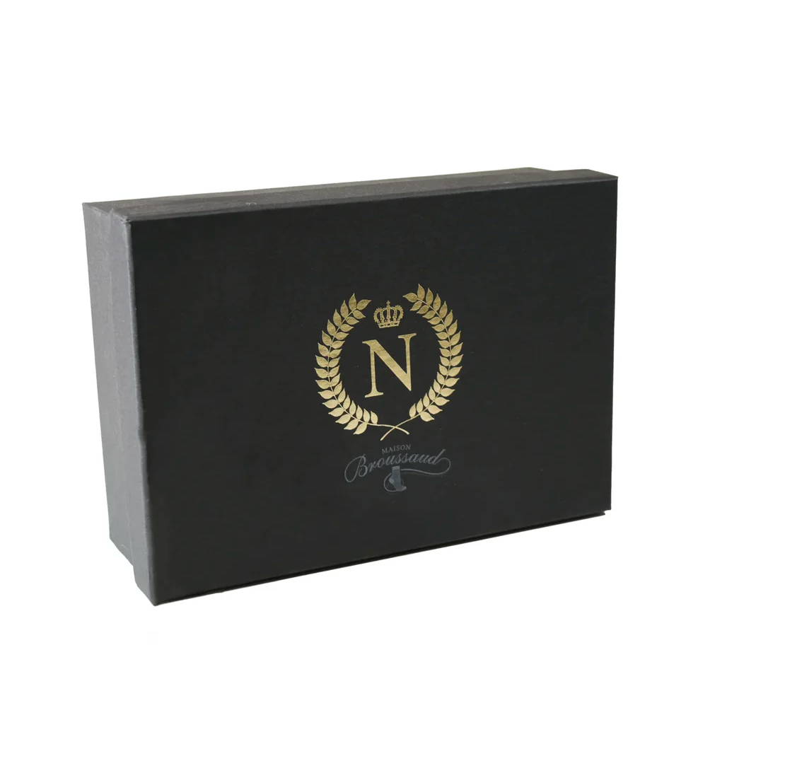 Offrez plus qu’un cadeau, offrez une expérience avec le coffret cadeau Maison Broussaud – boîte noire Napoléon. Conçu pour sublimer vos présents, ce coffret élégant est décoré du logo emblématique de la Maison Broussaud, de la couronne dorée et du célèbre « N » de Napoléon Bonaparte.