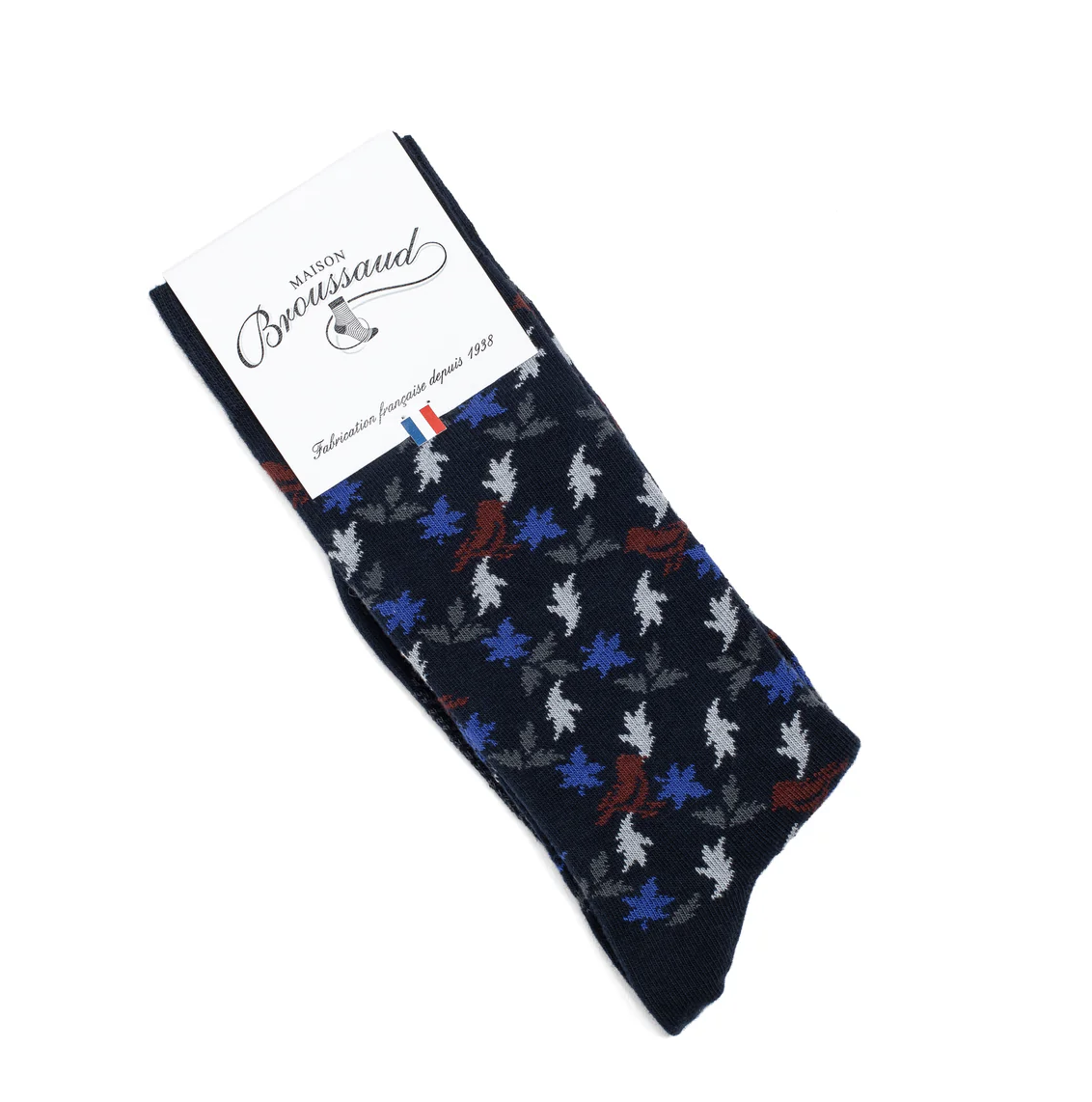 Chaussettes feuillage marine made in France par Maison Broussaud Chaussettes feuillage marine made in France par Maison Broussaud