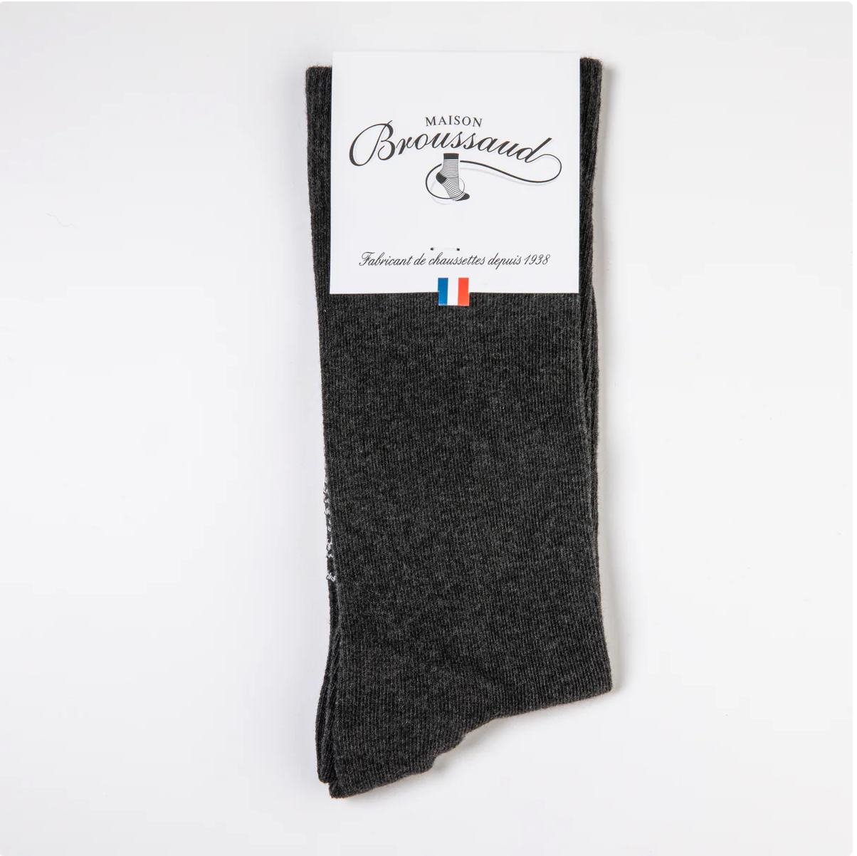 Le petit détail qui fait la différence ? Le discret drapeau bleu-blanc-rouge à la pointe du pied, symbole de leur fabrication 100 % française. Réalisées dans nos ateliers du Limousin, elles témoignent du savoir-faire textile de la Maison Broussaud depuis 1938.
