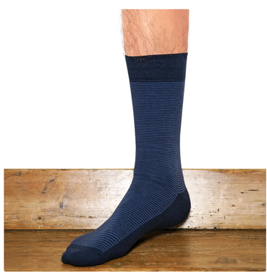 Il est temps d’affirmer votre style avec les chaussettes Les Millerayes de la Maison Broussaud. Fabriquées en France, en Haute-Vienne, elles allient élégance intemporelle et détails raffinés. Leur teinte bleu marine, rehaussée de fines rayures plus claires sur le pied, leur confère une allure à la fois discrète et originale.