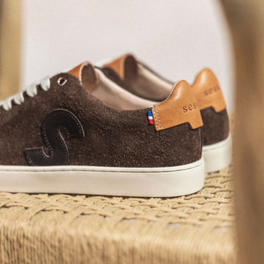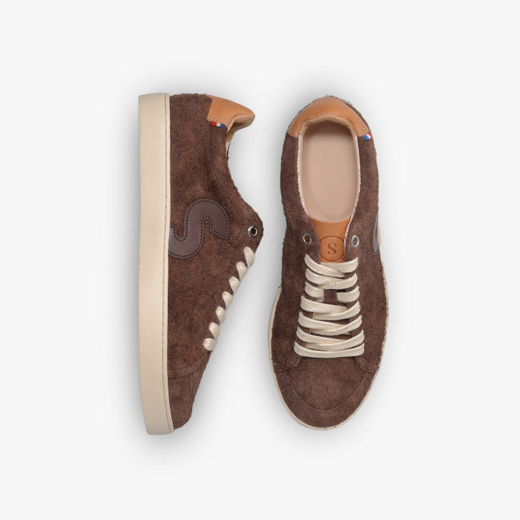 La Dahlia Marron est pile dans l’esprit Wild Line : une base en cuir velours texturé marron pour jouer la carte de la douceur, un empiècement “S” en cuir lisse marron pour la signature, et des détails en cuir lisse camel sur la languette et la talonnette pour réchauffer l’ensemble. Le tout posé sur une semelle crème qui garde la ligne.