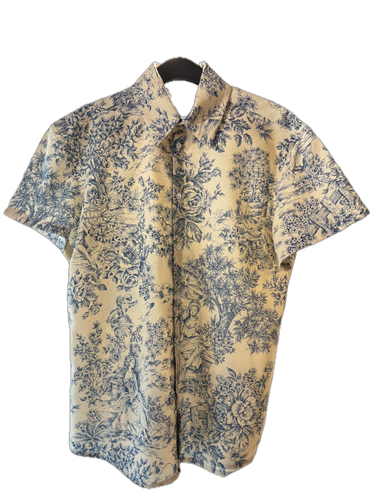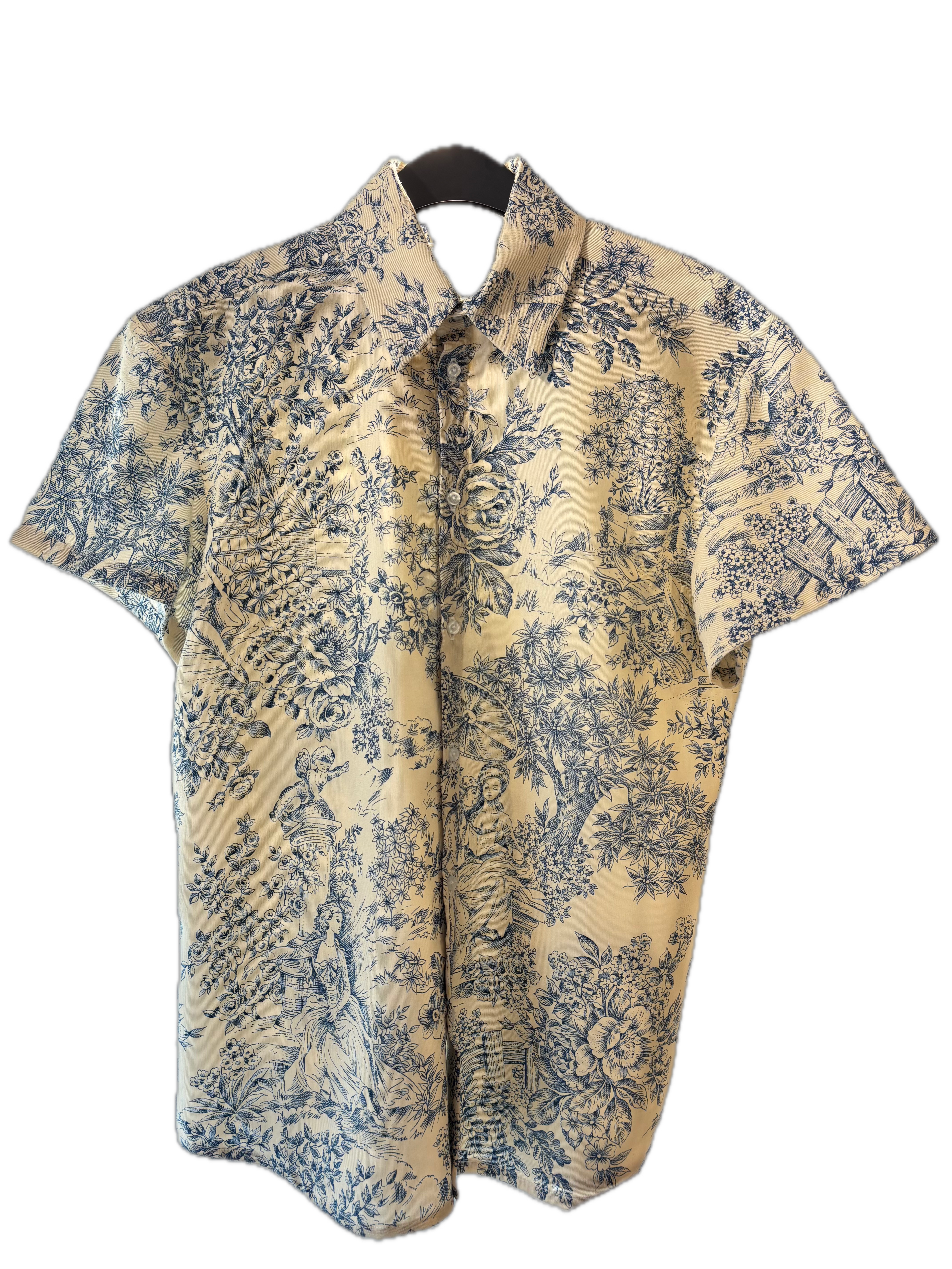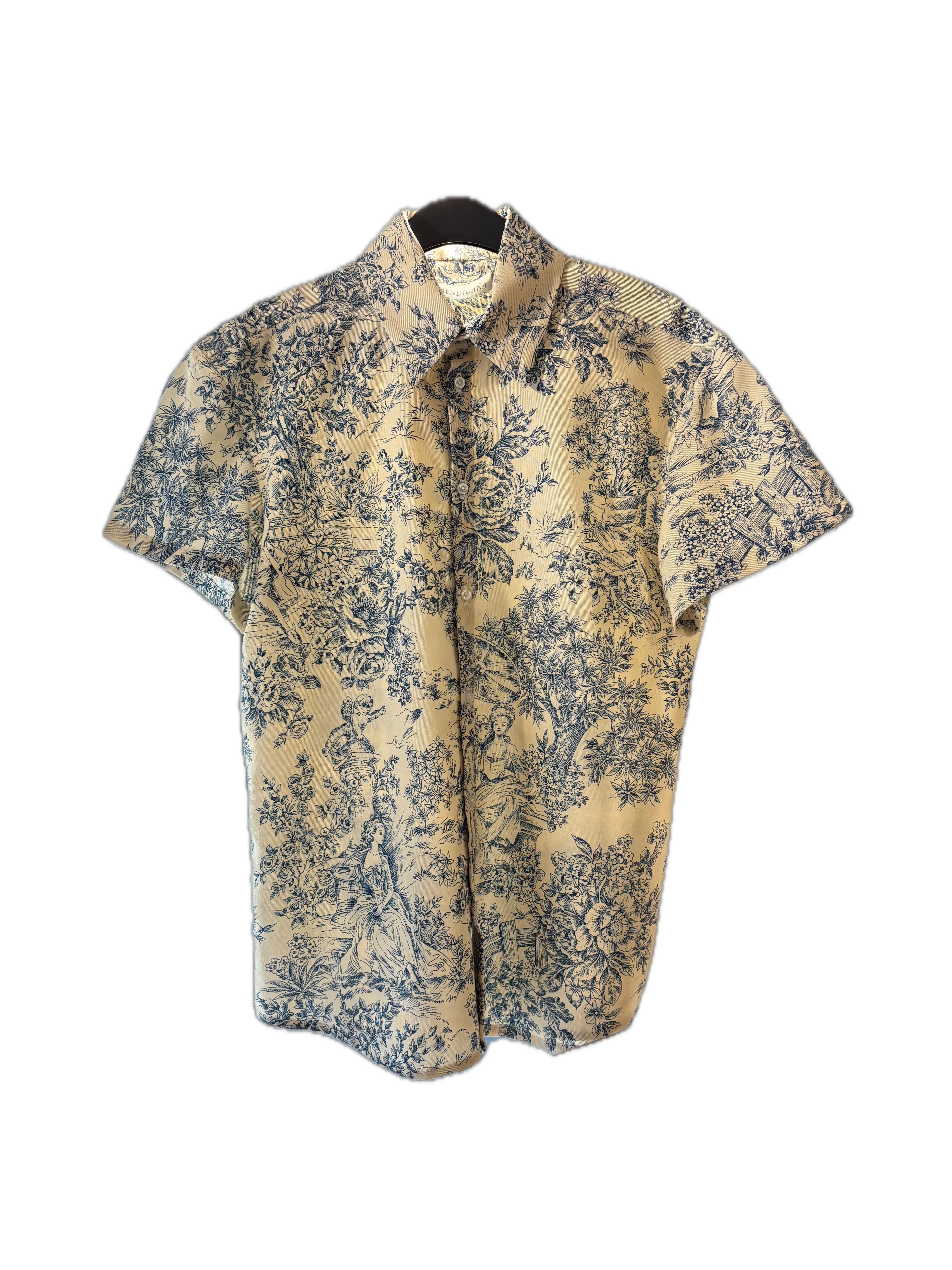 Affirmez votre style avec la chemise manches courtes en toile de Jouy signée Oscar Mendigana pour sa marque Atelier Mendigana. Véritable pièce d’exception, elle associe le charme intemporel du motif toile de Jouy à une coupe moderne et élégante.